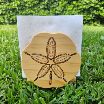 This item measures approximately 5.5 inches in diameter with 2.25 inches in between sand dollars. Napkins not included.