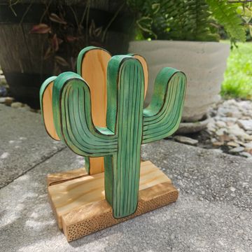 This item measures approximately 5.5 inches wide and 7 inches tall with 2.25 inches in between cacti.