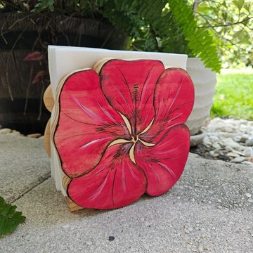 This item measures approximately 7 inches tall and 7 inches wide with 2.25 inches in between flowers. Napkins not included.